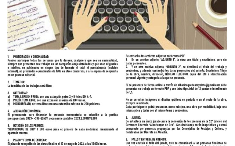 ABIERTO EL PLAZO DE ENVÍO DE TRABAJOS PARA LA 53ª EDICIÓN DEL CERTAMEN ALBARICOQUE DE ORO