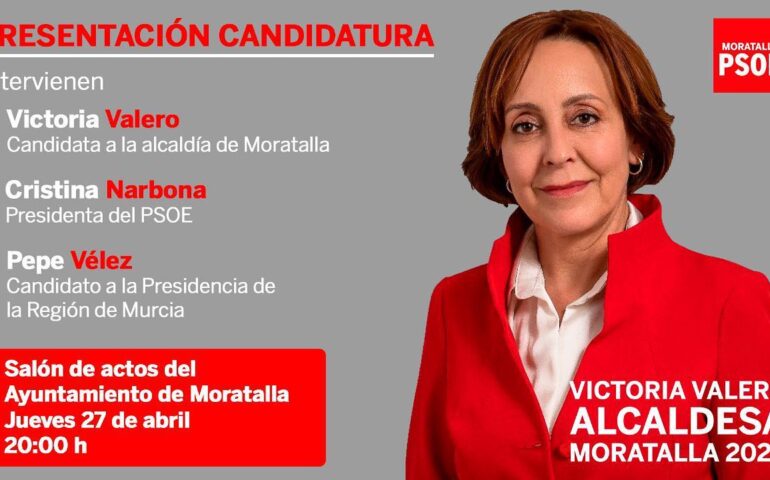 El próximo jueves 27 de abril a las 20:00 en el Salón de Actos del Ayuntamienot de Moratalla, se presenta la Candidatura del PSOE a…