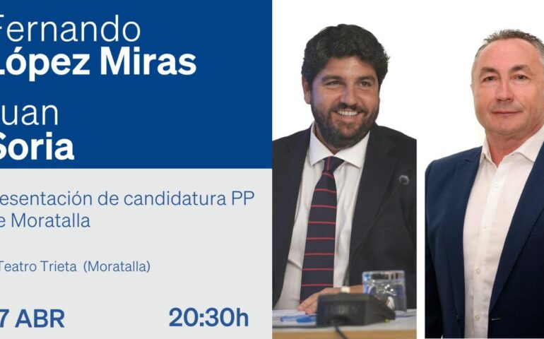 El próximo jueves 27 de abril a las 20:30 en el Teatro Trieta de Moratalla, se presenta la Candidatura del PP a las elecciones municipales…