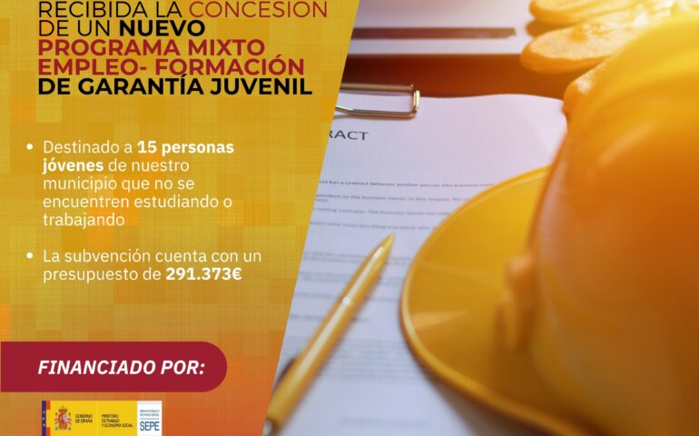 El Servicio Regional de Empleo y Formación ha concedido al Ayuntamiento de nuestro municipio un nuevo Programa Mixto Empleo-Formación de Garantía Juvenil destinado a 15…