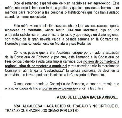 La alcaldesa de Moratalla, Candi Marín, ha hecho pública su preocupación por las precarias carreteras de Moratalla y la falta de medios para atender a la…