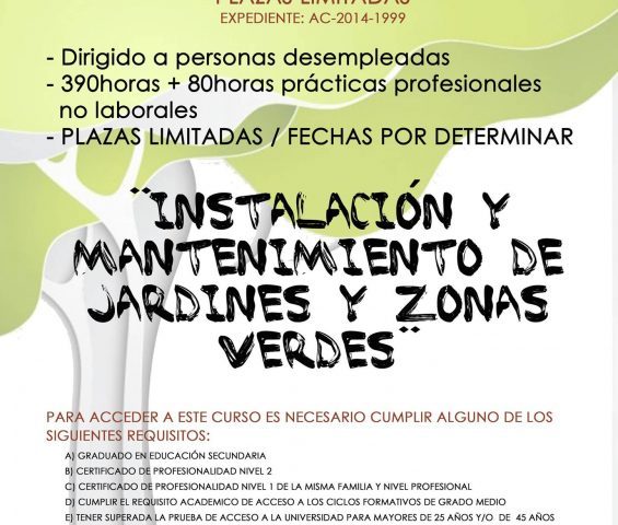 El curso de Instalación y Mantenimiento de Jardines y Zonas Verdes está dirigido a personas desempleadas. Constará de 390 horas de formación teórica y de…